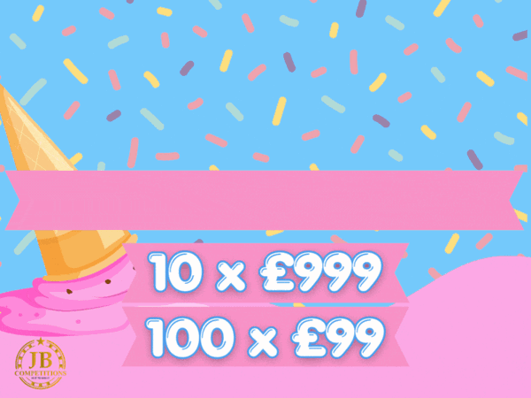 Win big with the "99er" find aone of 10🍦to win £999 instantly! Also 100 X £99 Instants. £999 end prize!